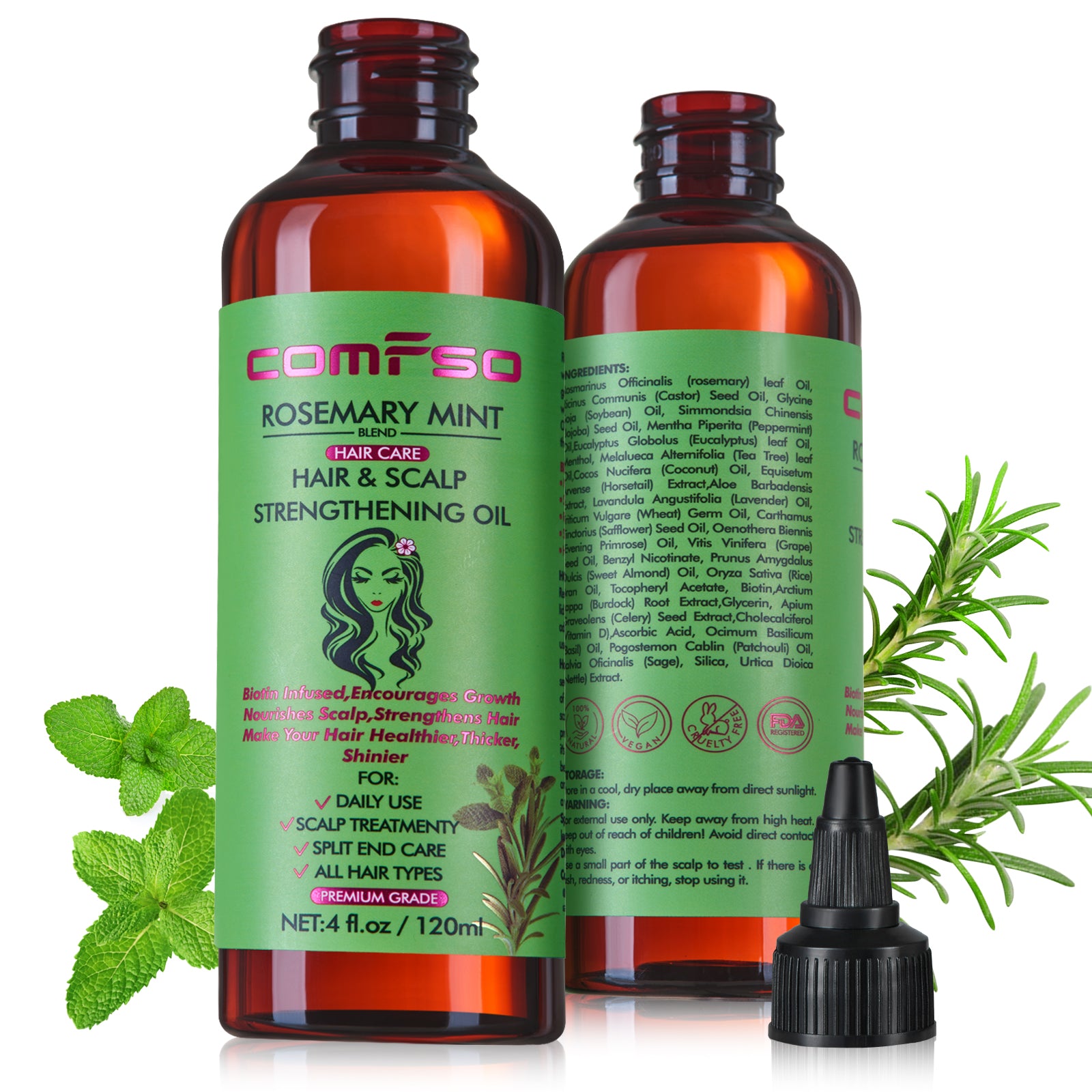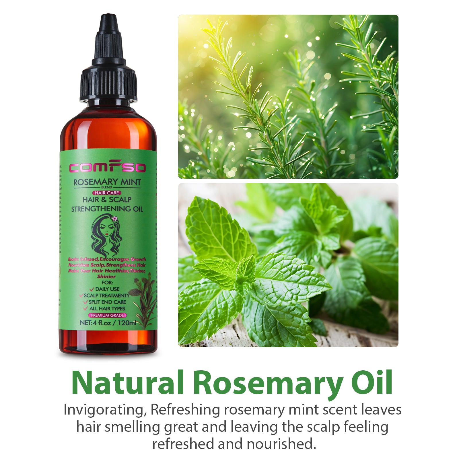 comfso Rosemary Oil for Hair Growth, Rosemary Mint Hair Oil Treatment For Dry Damaged,Split End, Scalp Hair Strenghtening Oil With Biotin, Castor Oil, 4 Fl Oz